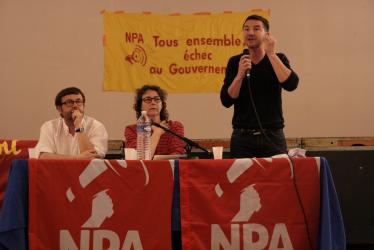 Tribune des intervenant lors du meeting de Philippe Poutou à Brest.
