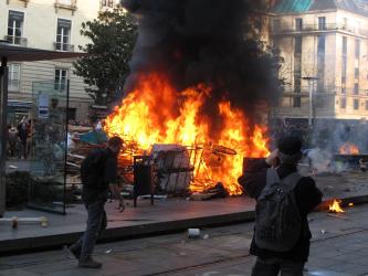 Un feu allumé devant la police