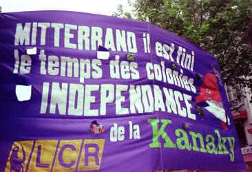 Bandrole de la LCR Mitterand il est fini le temps des colonies Indépendance de la Kanaky