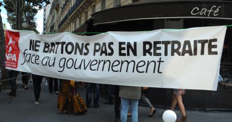 Banderole Npa ne battons pas en retraite face au gouvernement