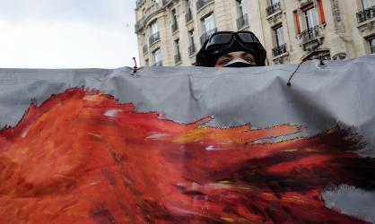 Drapeau du Npa manifestation contre la Réforme par ordonnances du Droit du Travail
