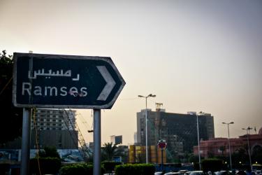 Le siège du PND, près de la place Tahrir, brûlé durant la révolution