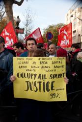 Manifestante brandissant un panneau