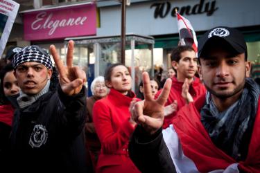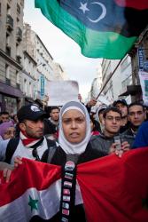 Manifestante et drapeau lybien, syrien, égyptien...