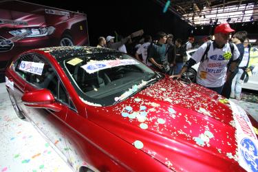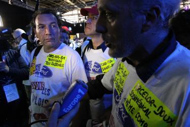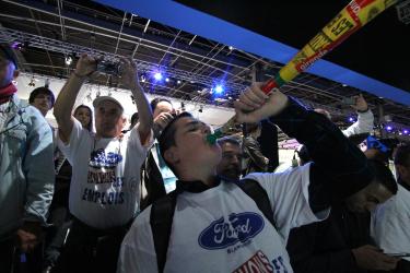 la délégation des Ford avec des salariés de PSA membres de Solidaires