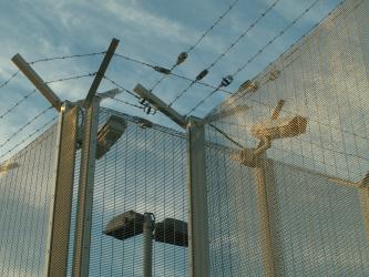 banderole du collectif de soutien aux sans papiers sur les grilles de l apréfecture