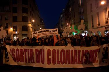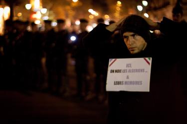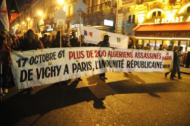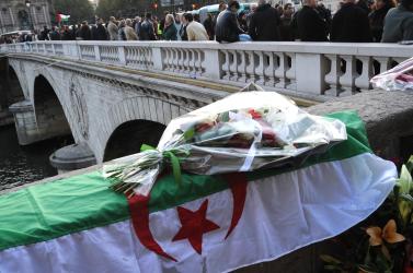 Drapeau Algérien et gerbe en souvenir du massacre du 17 Octobre 1961