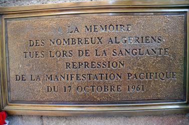 Plaque commémorative aux nombreux Algériens tués l'ors de la sanglante répression du 17 Octobre 1961
