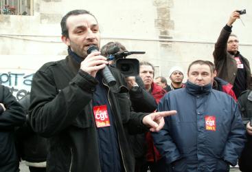 rassemblement media et syndicat avant l'arrivé d'olivier besancenot