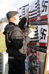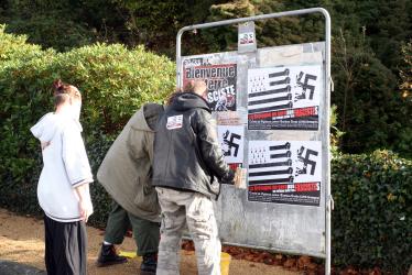 Militants libertaires et leurs banderoles contre le facisme et le racisme sur la place Klémar à Strasbourg