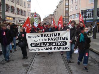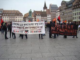 Le NPA, la GA et ATTAC en tête de la manifestation antiraciste à Strasbourg.