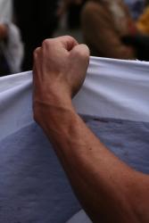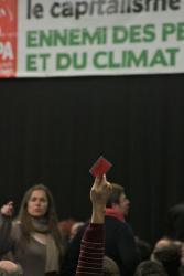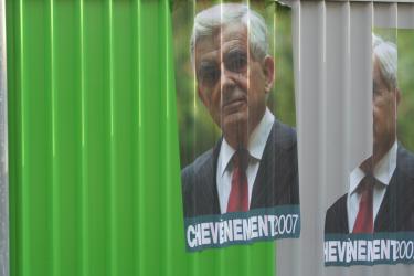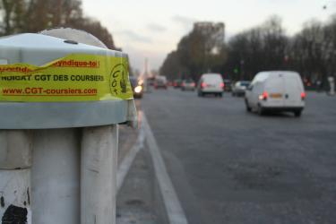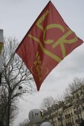 Drapeau LCR au dessus d'un panneau avec flèche vers le haut