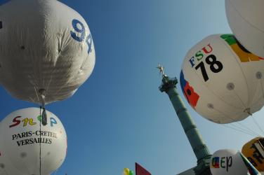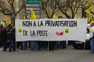 cortége sud ptt avec leur banderole contre le privatisation de la poste