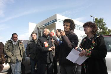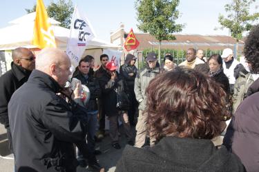 prises de parole devant l'entrée, en présence d'Eliane ASSASSI sénatrice PCF