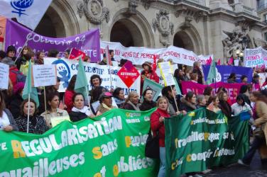 banderole des organisations féministes sur les marches de l'opéra