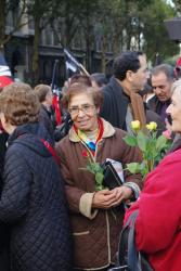 banderoel du npa à l'arrivée de la manifestation