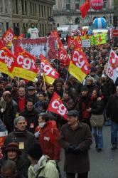 drapeaux Cgt du crédit Lyonnais manifestation de l'Opéra au palais Brongniart: siège de la Bourse Paris