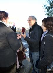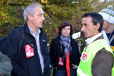 Philippe Poutou discutant avec les ouvriers