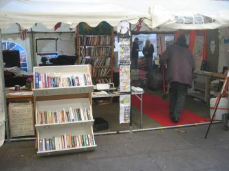 Bibliothèque dans le campement d'indignés à Londres