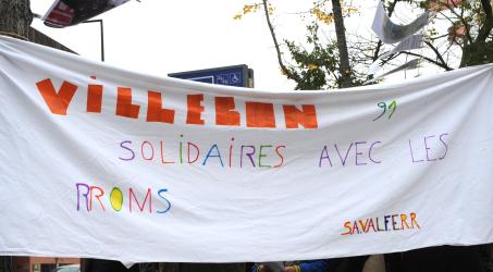Banderole Villebon 91 solidaires avec les Roms