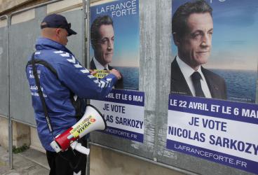 Autocollant l'acier lorrain vivra collé sur l'affiche de campagne de Sarkozy