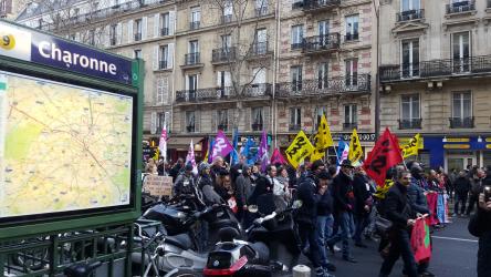 Tête de cortège Manifestants Syndicat SUD Rail Cheminots