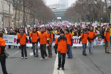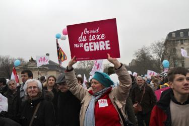 Banderole NPA jeunes : Contre les réactionnaires et la politique du gouvernement, résistance. Mariage, adoption, PMA.