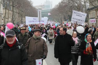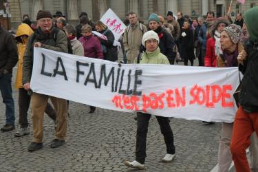 Banderole Meaux Un papa + une maman on ne ment pas aux enfants