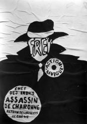Affiches de Mai 68 : La police à l'ORTF, c'est la police chez vous. La police vous parle tous les soirs à 20H