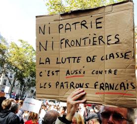 Affichette Ni patrie ni frontières la lutte de classe c'est aussi contre les patrons Français