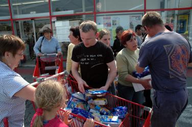 Pêcheurs en colère sommant le poissonier de fermer son commerce en solidarité