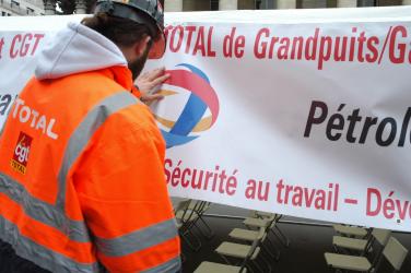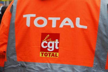 Sigle de la raffinerie Total de Granpuits Gargenville et salarié Cgt FNCI fédération de l'industrie Chimique.