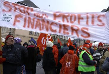 Pierre MARSALEIX pour la FSU ile de France en conférence de Presse devant la bourse de Paris.