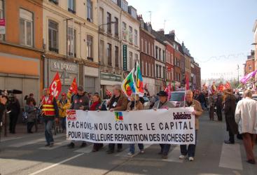 Lille , 1er mai 2013.Banderole de tête de la manifestation.