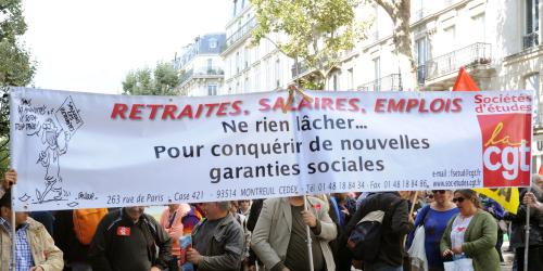 Banderole Cgt Snecma exigeons une retraite permettant de vivre dignement