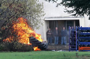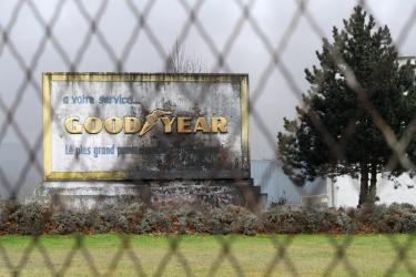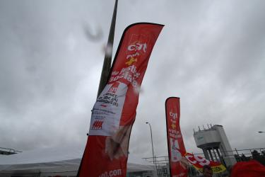 Bannières CGT sous la pluie et chateau d'eau Valeo