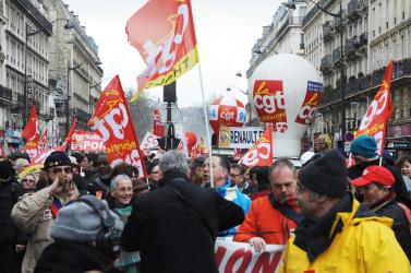 Banderole Cgt Peugeot Citroën Poissy Automobile contre le projet de loi El'Khomri de réforme du code du travail