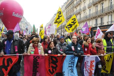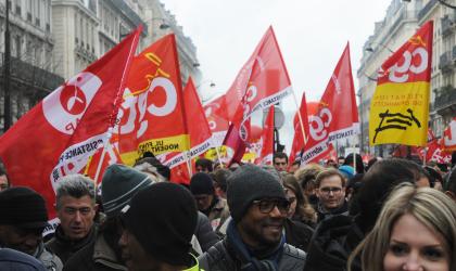 Lutte Ouvrière Tête de cortège contre le projet de loi El'Khomri de réforme du code du travail Paris