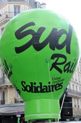 Ballon du Syndicat SUD Rail Solidaires Cheminots contre le projet de loi El'Khomri de réforme du code du travail