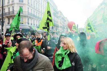 Tête de cortège Manifestants Syndicat SUD Rail Cheminots