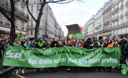 Manifestants Syndicat SUD Rail Cheminots contre le projet de loi El'Khomri de réforme du code du travail