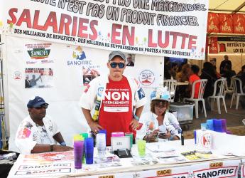 Stand du Npa les Sanofi entreprise de l'industrie pharmaceutique en lutte