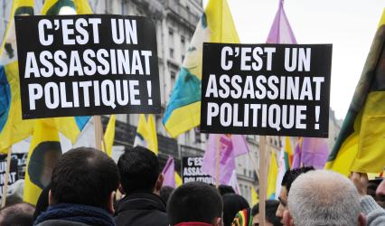 Pancartes kurdes C'est un assassinat politique!
