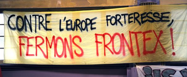 Banderole contre l'Europe forteresse fermons Frontex!