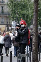 Manifestante masquée en réponse à l'interdiction de porter une cagoule dans les manifestations
