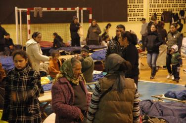 Rroms réveil au gymnase de Massy à 5h30 du matin avant l'expulsion