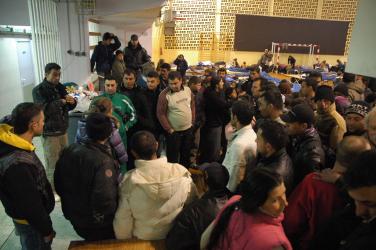 Rroms au gymnase de Massy à 7h00 du matin avant expulsion.