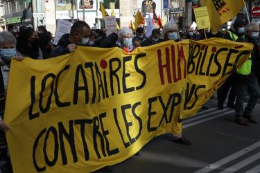 Banderole sur le canal de Saint-Denis Rendez nous le pont !