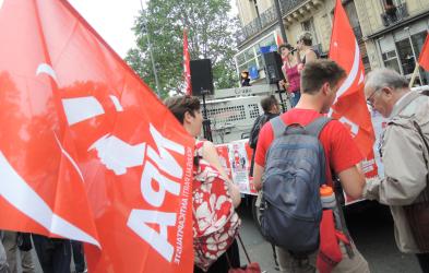 Drapeau du Npa à la manifestation et grève de la Fonction Publique du 22 mai 2018