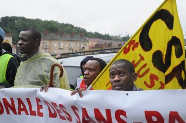 Sans-papiers et Migrants de l'Union nationale des Sans-papiers (UNSP) à Corbeil